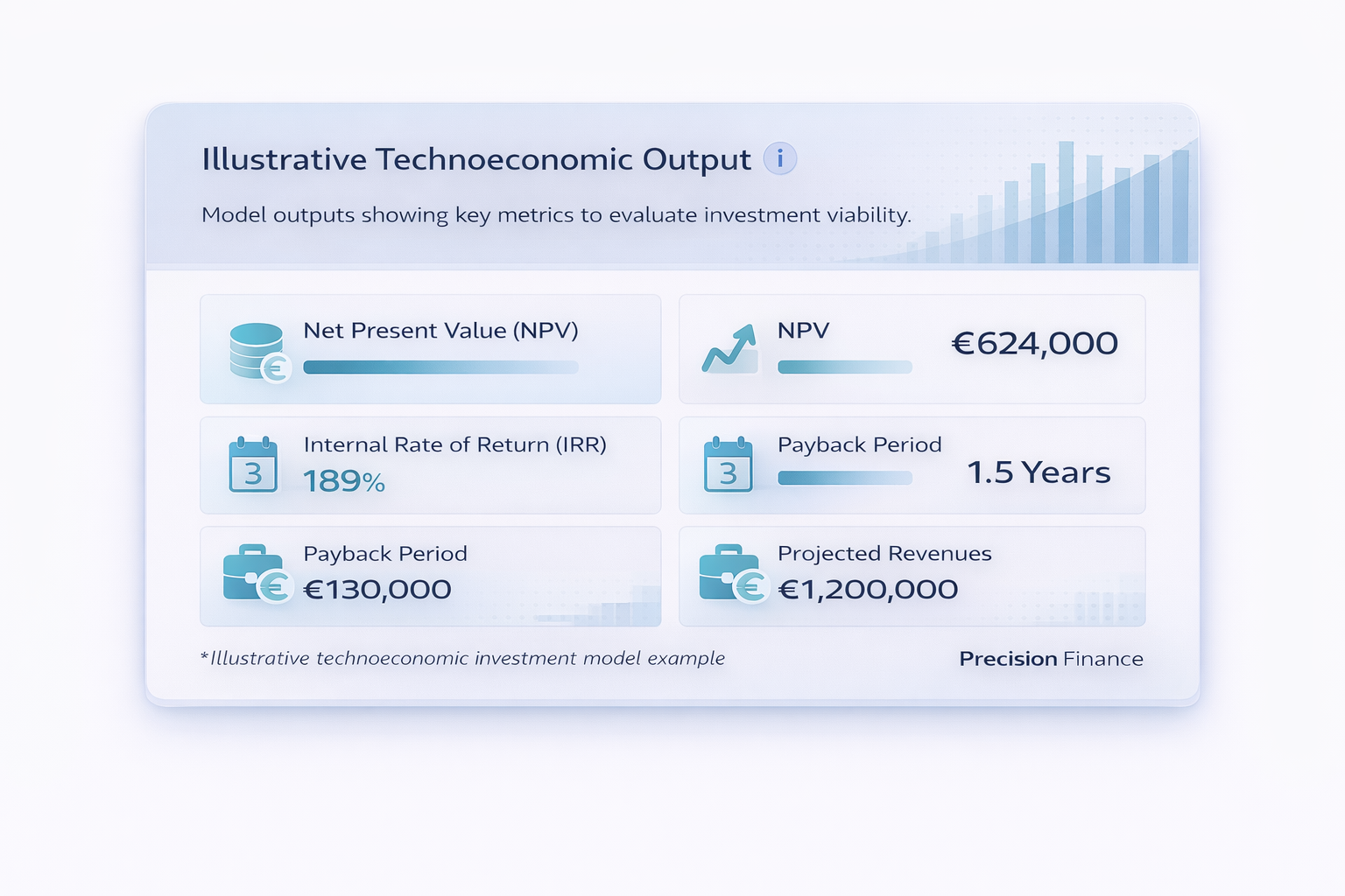 Submission-ready technoeconomic analysis reports aligned with Cyprus grant requirements.